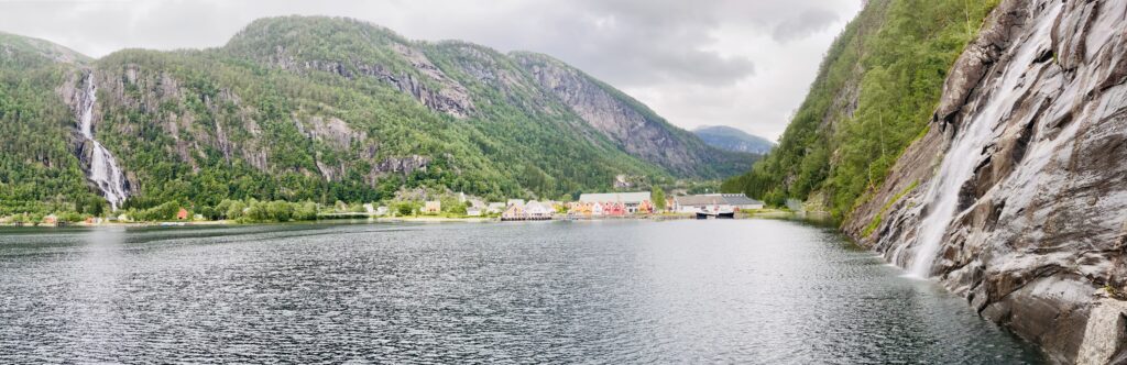 Nach dem Mittag ging es dann gleich beim Fischmarkt los mit unserer Bootstour. Unser Schnellboot brachte uns vorbei an Bryggen, durch den Osterfjord in die Meerenge Mostraumen. Hier fuhr der Kapitän eng an die Wasserfälle und die atemberaubende Berghände. Erstmals mussten wir nicht selber fahren und genossen den Tag bei Sonnenschein und vielen Eindrücken. Am Abend ging es zurück auf unseren Stellplatz wo wir uns für den kommenden Tag stärken. Wir freuen uns und sind gespannt was uns das Landesinnere von Norwegen zu zeigen hat.